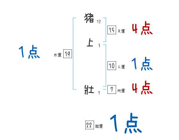外運![]() | 猪上壯さんの外運は19画の1つ星!優れた才能を持ちますが、協調性が足りないことも。周りの人と協力する事を意識しましょう。 生活面を象徴する運勢です。外部から受ける影響力を表し、結婚運、家庭運や職場、環境への順応性を表します。 |