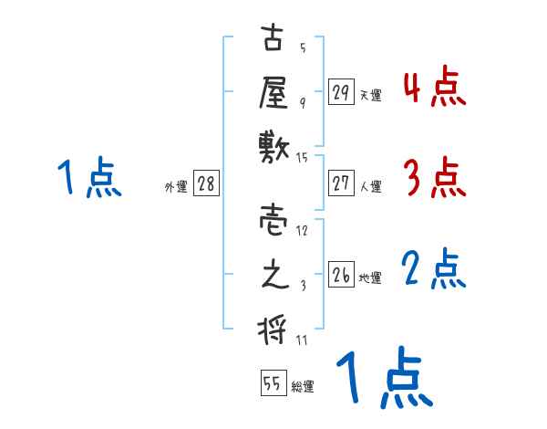 古屋敷壱之将さんの画数の鑑定結果