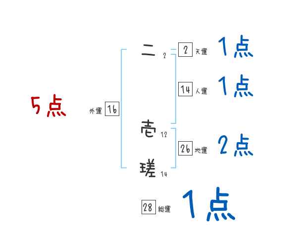 総運![]() | 二壱瑳さんの総運は28画の1つ星!家庭環境に注意。スポーツで活躍できる能力があるかも。 あなたの人生を表す1番重要な運勢です。生涯を通じて影響する総合運となり、主に50歳以降の晩年期に影響を及ぼします。 |