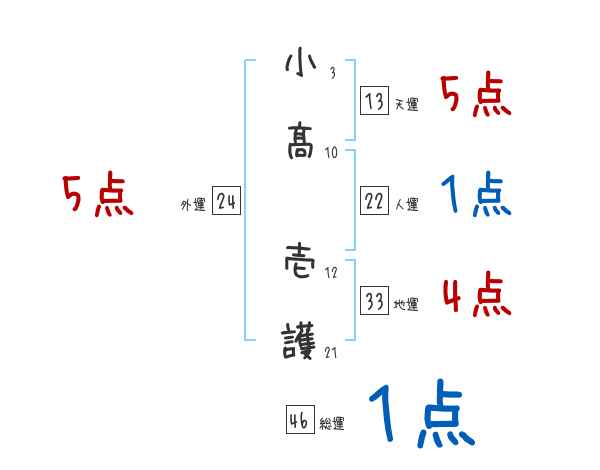 小髙壱護さんの画数の鑑定結果
