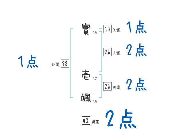 総運![]() | 實壱颯さんの総運は40画の2つ星!自信過剰で物事に固執するためトラブルに注意。 あなたの人生を表す1番重要な運勢です。生涯を通じて影響する総合運となり、主に50歳以降の晩年期に影響を及ぼします。 |