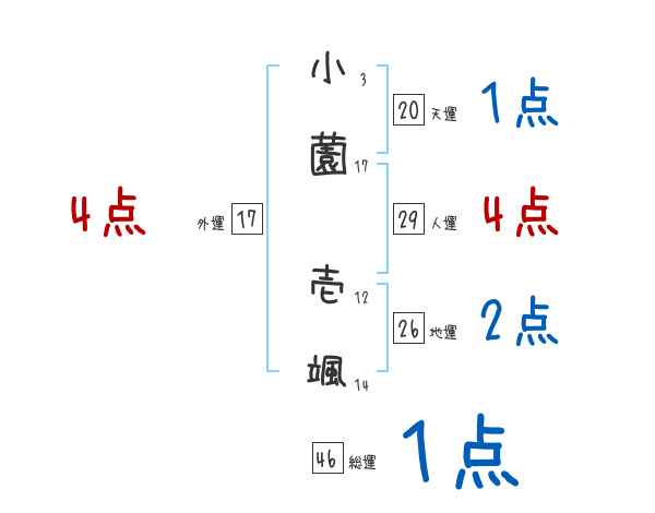 小薗壱颯さんの画数の鑑定結果