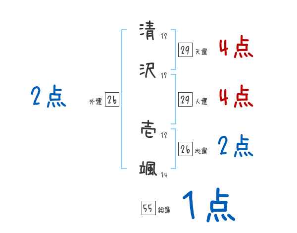 清沢壱颯さんの画数の鑑定結果