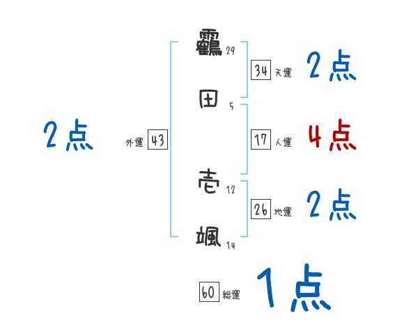 靏田壱颯さんの画数の鑑定結果