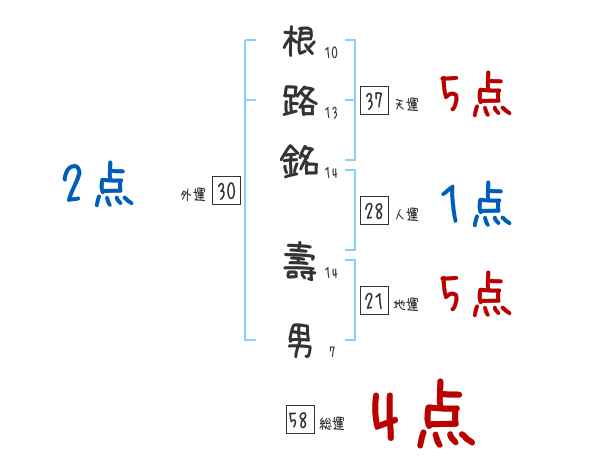根路銘壽男さんの画数の鑑定結果