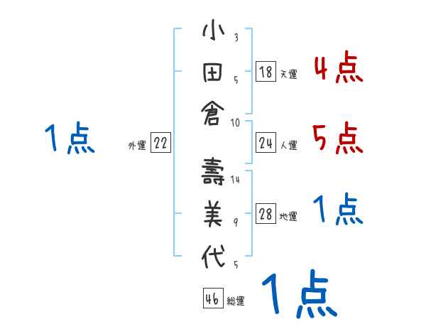 小田倉壽美代さんの画数の鑑定結果