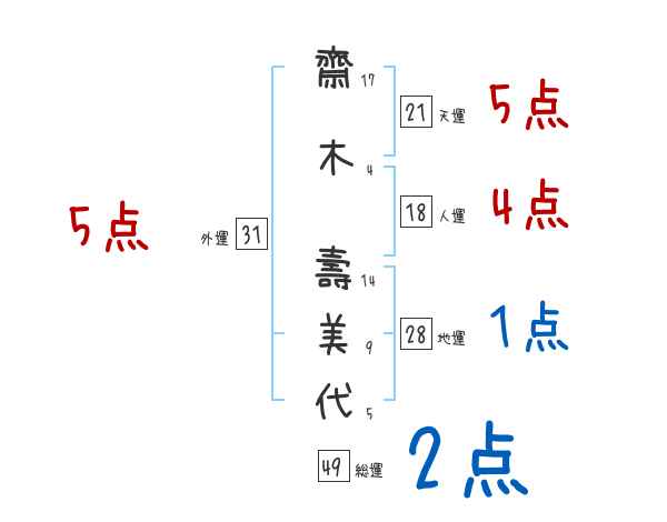 齋木壽美代さんの画数の鑑定結果