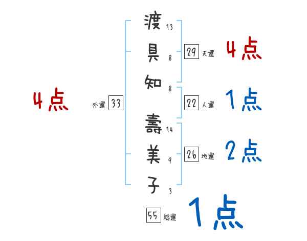 渡具知壽美子さんの画数の鑑定結果