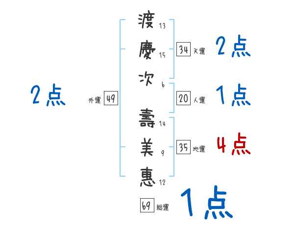 渡慶次壽美惠さんの画数の鑑定結果