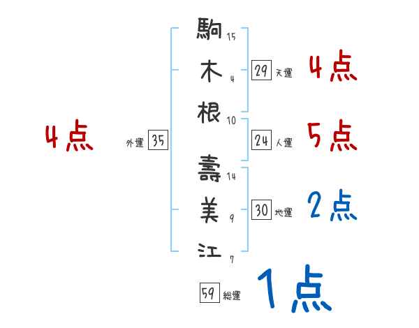 駒木根壽美江さんの画数の鑑定結果
