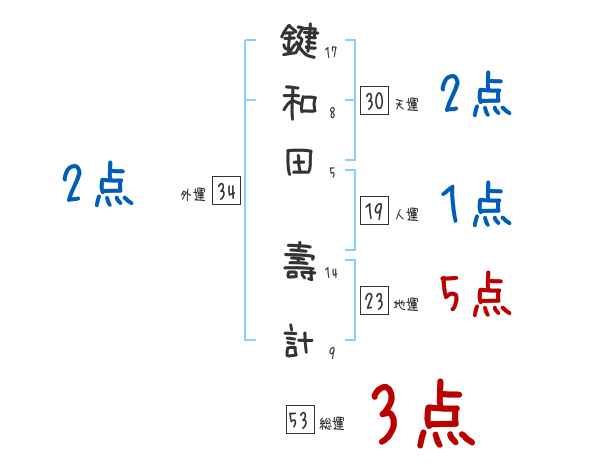 鍵和田壽計さんの画数の鑑定結果