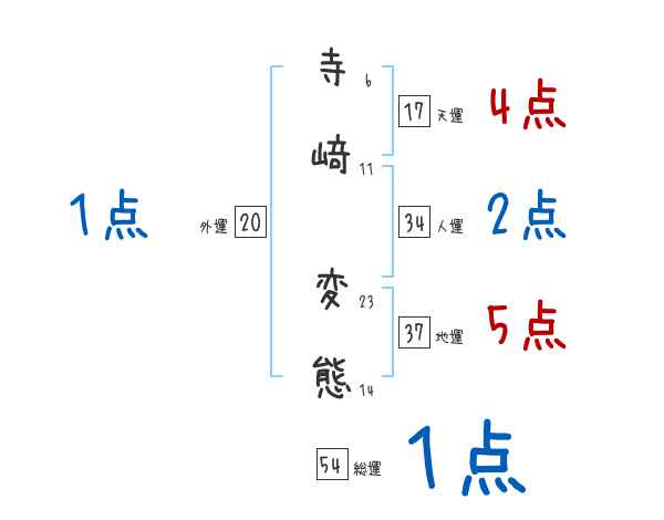 寺﨑変態さんの画数の鑑定結果