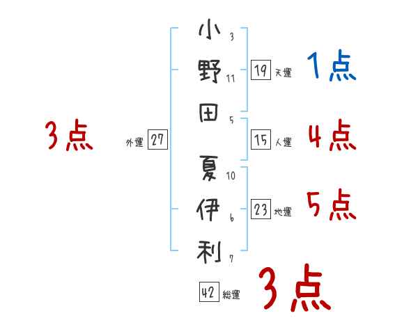 小野田夏伊利さんの画数の鑑定結果