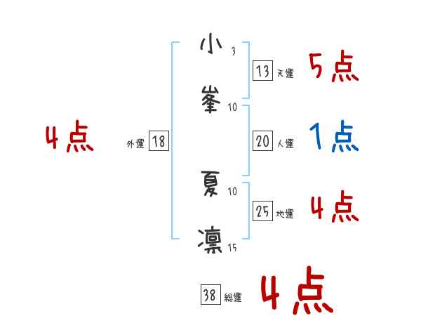 外運![]() | 小峯夏凛さんの外運は18画の4つ星!情熱的で剛気。忍耐力があり信頼される。 生活面を象徴する運勢です。外部から受ける影響力を表し、結婚運、家庭運や職場、環境への順応性を表します。 |