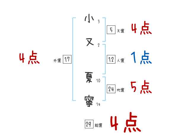 小又夏寧さんの画数の鑑定結果