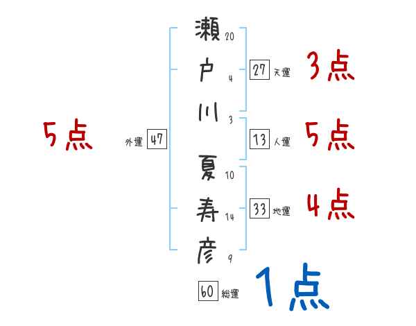瀬戸川夏寿彦さんの画数の鑑定結果