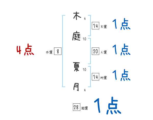 木庭夏月さんの画数の鑑定結果
