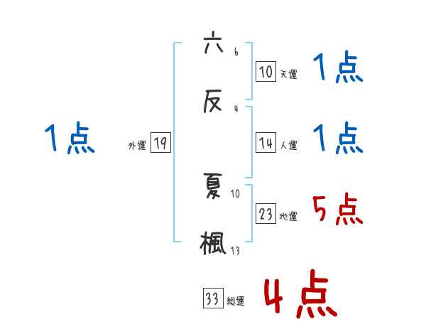 六反夏楓さんの画数の鑑定結果