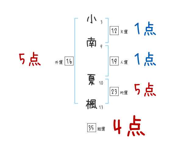 小南夏楓さんの画数の鑑定結果