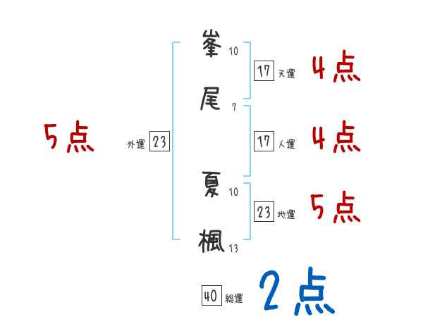 峯尾夏楓さんの画数の鑑定結果