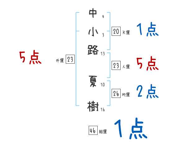 中小路夏樹さんの画数の鑑定結果