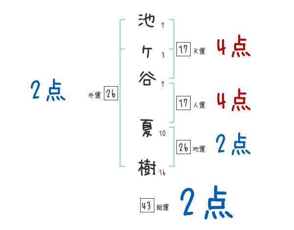 池ヶ谷夏樹さんの画数の鑑定結果