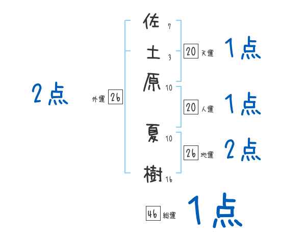 外運![]() | 佐土原夏樹さんの外運は26画の2つ星!波瀾万丈かも。信頼できる人を大事にしましょう。 生活面を象徴する運勢です。外部から受ける影響力を表し、結婚運、家庭運や職場、環境への順応性を表します。 |