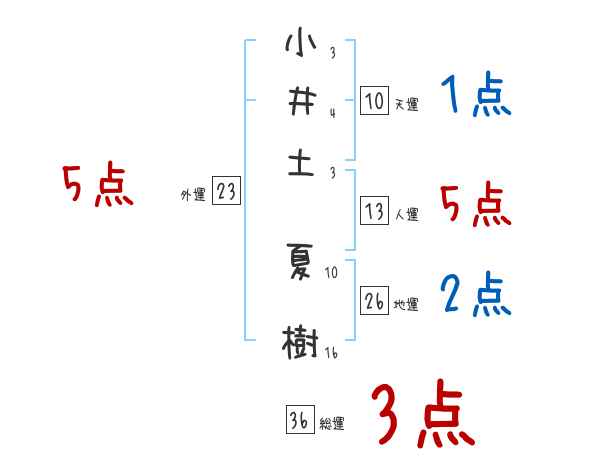 小井土夏樹さんの画数の鑑定結果