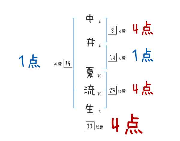 中井夏流生さんの画数の鑑定結果