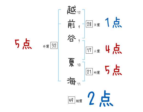 越前谷夏海さんの画数の鑑定結果