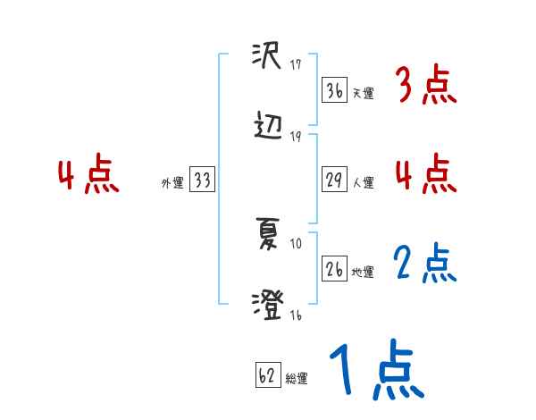 沢辺夏澄さんの画数の鑑定結果