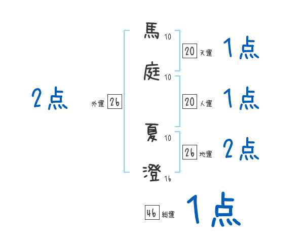 馬庭夏澄さんの画数の鑑定結果
