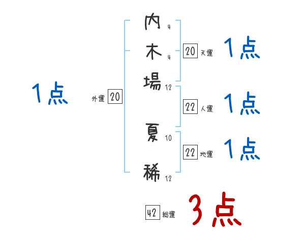 総運![]() | 内木場夏稀さんの総運は42画の3つ星!病気に注意。多芸であるが消極的でおとなしい。 あなたの人生を表す1番重要な運勢です。生涯を通じて影響する総合運となり、主に50歳以降の晩年期に影響を及ぼします。 |