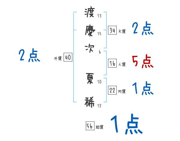 渡慶次夏稀さんの画数の鑑定結果