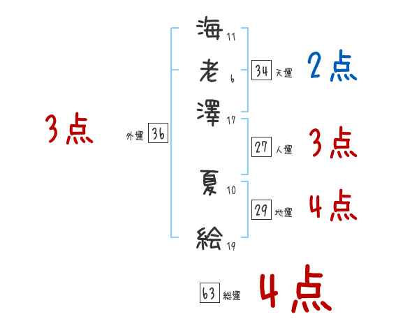 天運![]() | 海老澤夏絵さんの天運は34画の2つ星!独創性に優れるが、自尊心が強く災難に注意しましょう。 家系が持つ宿命的な運勢を表します。祖先から受け継いだ苗字ですので自分の力が及びません。家柄を象徴します。 |
