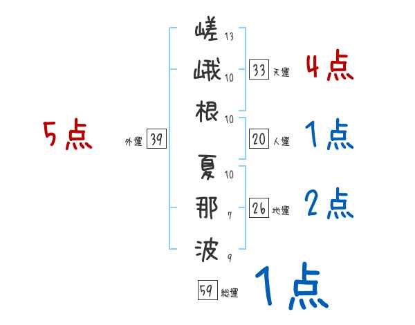 嵯峨根夏那波さんの画数の鑑定結果