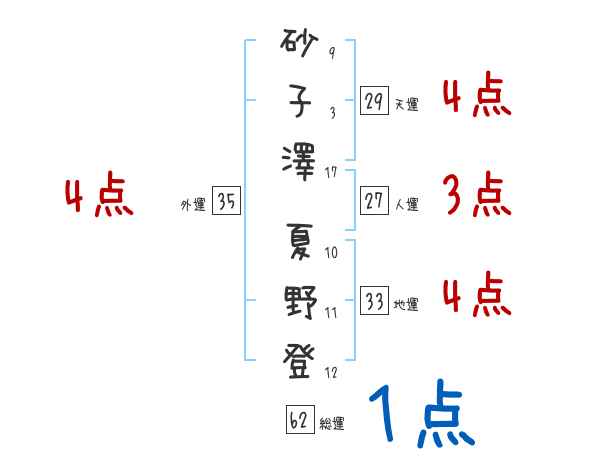 砂子澤夏野登さんの画数の鑑定結果