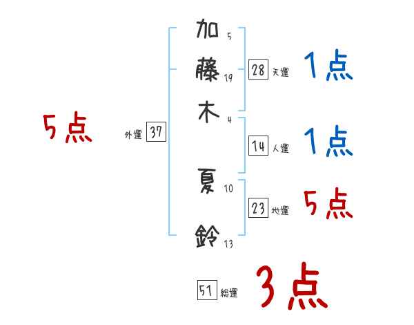 加藤木夏鈴さんの画数の鑑定結果