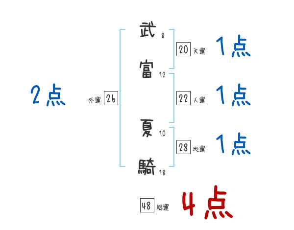 武富夏騎さんの画数の鑑定結果