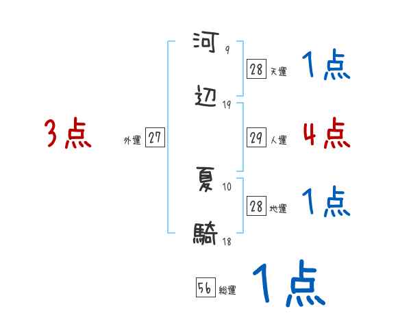 河辺夏騎さんの画数の鑑定結果