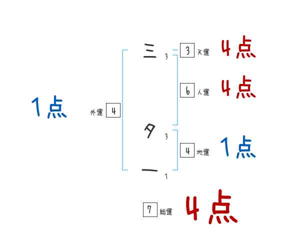 天運![]() | 三夕一さんの天運は3画の4つ星!活動的で才能に恵まれ、多くの信頼を得る。希望に満ち成長する。 家系が持つ宿命的な運勢を表します。祖先から受け継いだ苗字ですので自分の力が及びません。家柄を象徴します。 |