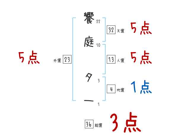 天運![]() | 饗庭夕一さんの天運は32画の5つ星!柔軟性があり成功する。チャンスが多く金運が良い。 家系が持つ宿命的な運勢を表します。祖先から受け継いだ苗字ですので自分の力が及びません。家柄を象徴します。 |