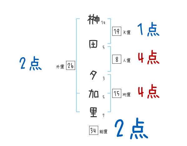 外運![]() | 榊田夕加里さんの外運は26画の2つ星!波瀾万丈かも。信頼できる人を大事にしましょう。 生活面を象徴する運勢です。外部から受ける影響力を表し、結婚運、家庭運や職場、環境への順応性を表します。 |