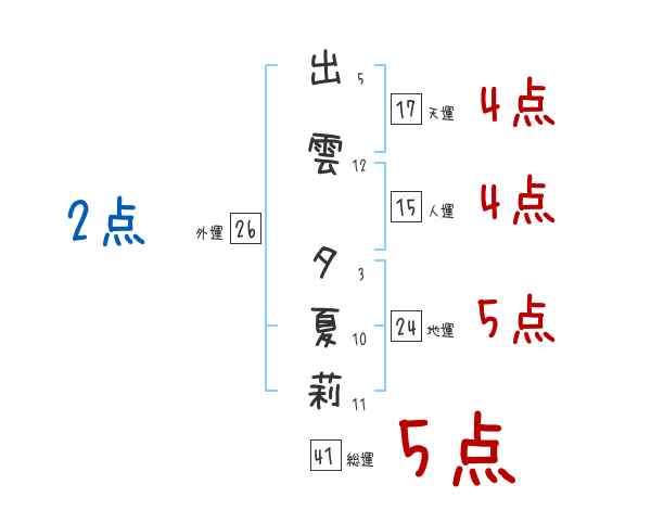 出雲夕夏莉さんの画数の鑑定結果
