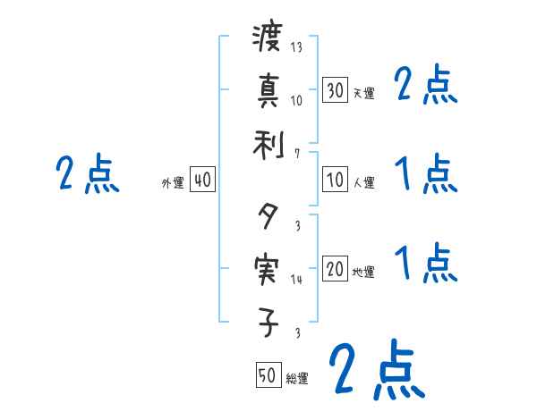 渡真利夕実子さんの画数の鑑定結果