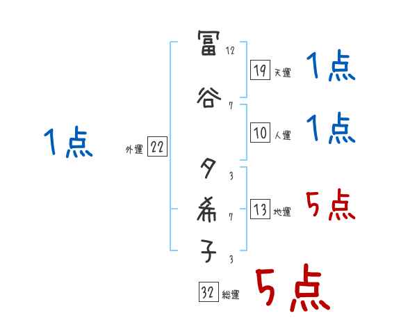 冨谷夕希子さんの画数の鑑定結果