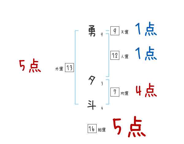 勇夕斗さんの画数の鑑定結果
