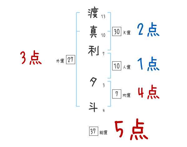 天運![]() | 渡真利夕斗さんの天運は30画の2つ星!浮き沈みの激しさに注意しましょう。 家系が持つ宿命的な運勢を表します。祖先から受け継いだ苗字ですので自分の力が及びません。家柄を象徴します。 |