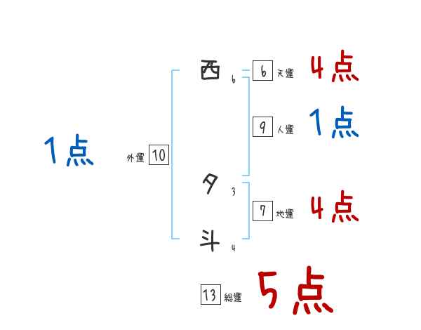 天運![]() | 西夕斗さんの天運は6画の4つ星!慎重な努力家で信頼を得る。誠実な精神で向上心に優れる。 家系が持つ宿命的な運勢を表します。祖先から受け継いだ苗字ですので自分の力が及びません。家柄を象徴します。 |