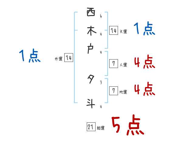 天運![]() | 西木戸夕斗さんの天運は14画の1つ星!人に対して優しいがストレスを溜め込みがち。人間関係のトラブルを避けるよう気をつけましょう。 家系が持つ宿命的な運勢を表します。祖先から受け継いだ苗字ですので自分の力が及びません。家柄を象徴します。 |